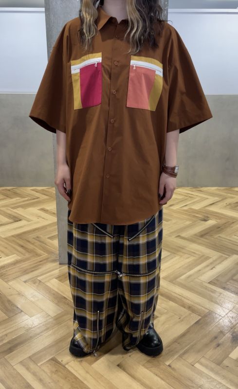 パンツはレーヨン素材なのでこれからの季節着やすいアイテムになっていて、前に付いているチャックをその日の気分で開閉してコーディネートが楽しめるアイテムになってます。