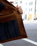 先の裏地なしバージョンと同様、コーデュロイの襟と、フロントおよび胸ポケットに配されたゴールドトーンのジップクロージャーが特徴的。