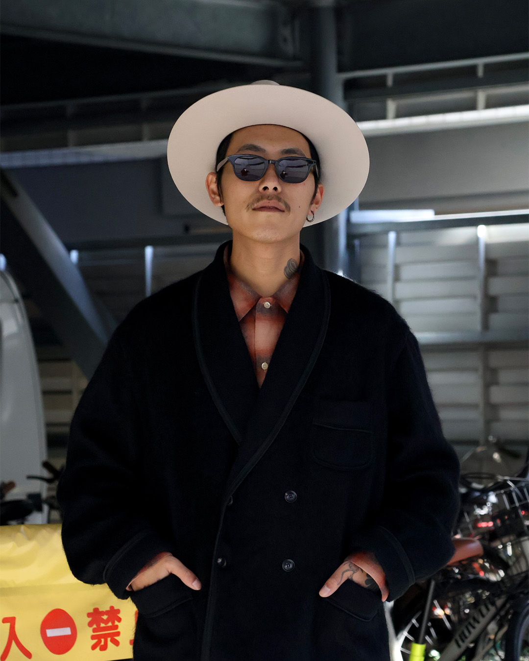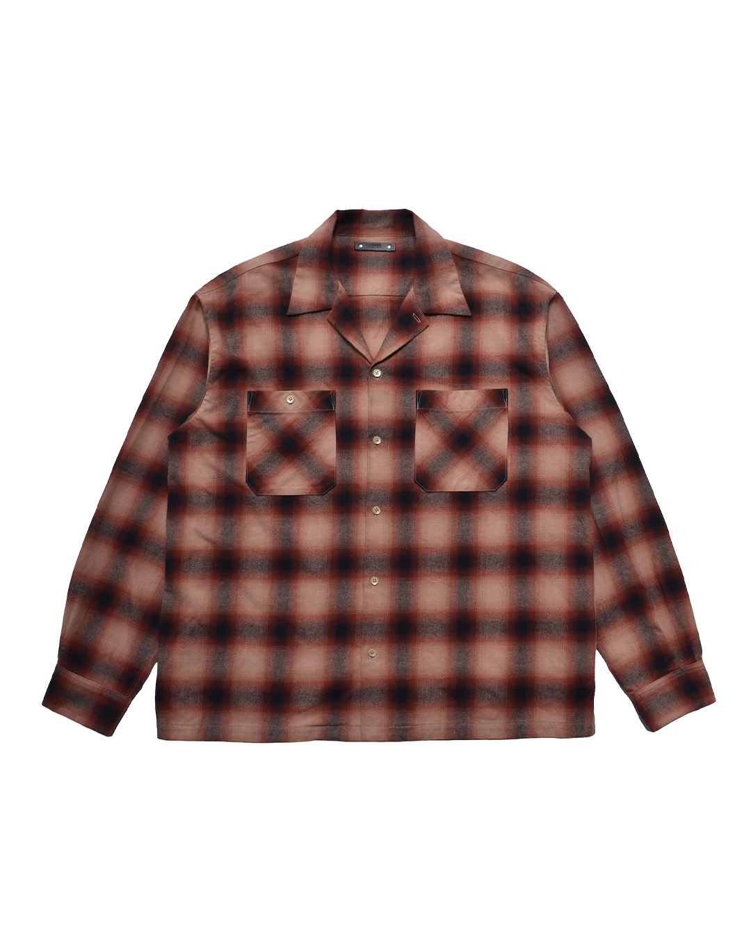 ジャケットの下にはMINEDENIMのC.Flannel Ombre Open Collar SHを合わせています。