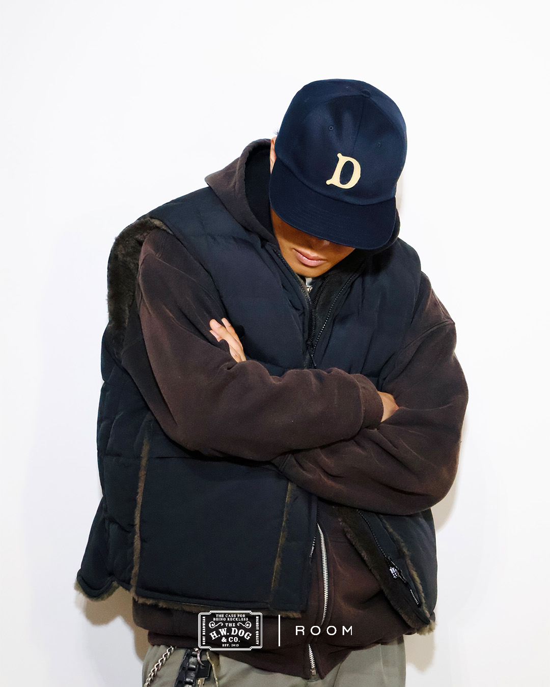 キャップの型やDOGの頭文字「D」のオリジナルワッペンはそのままに、素材を通年着用いただけるコットンツイルに変更しました。