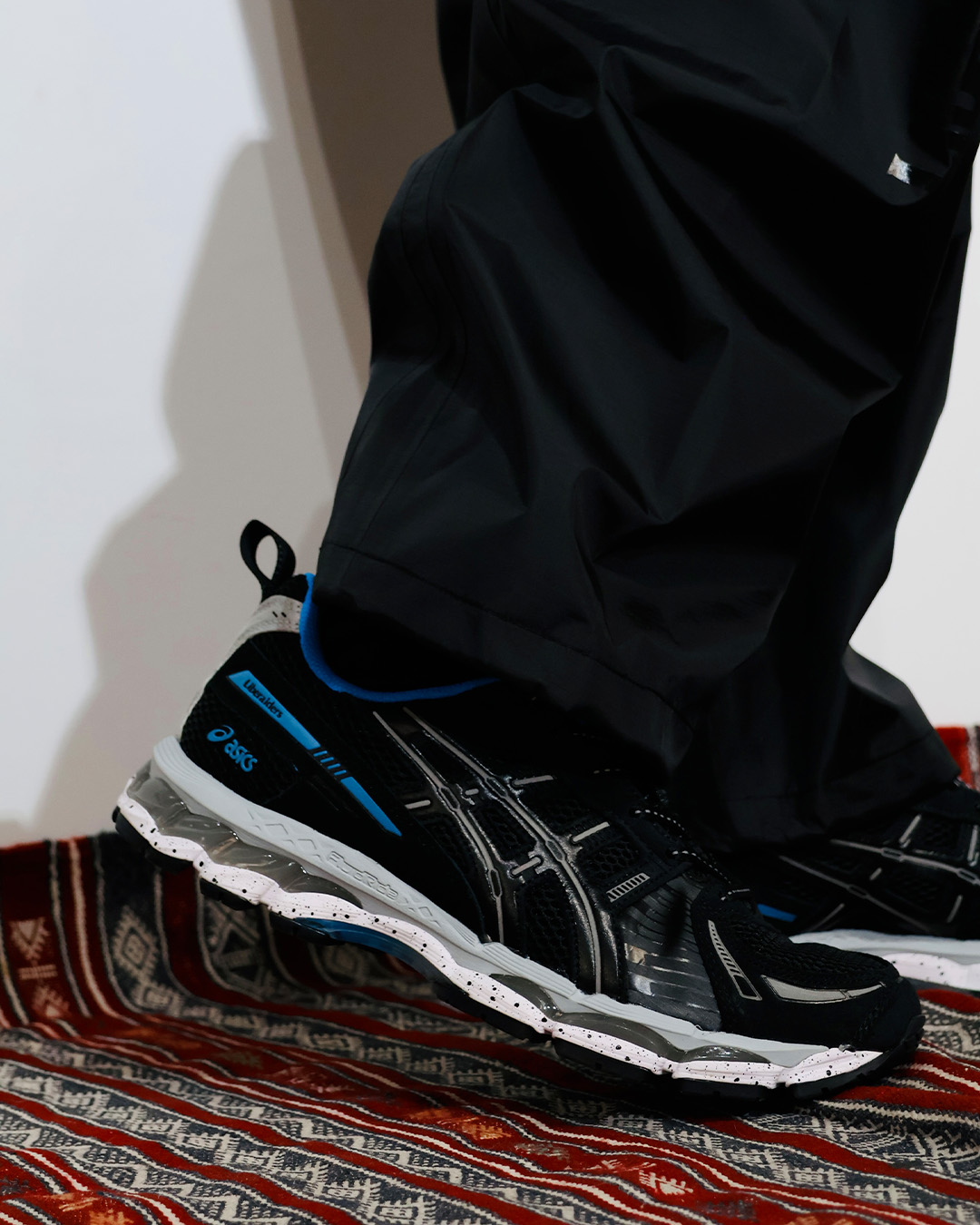 シューズにはアシックスとのLiberaiders初となるコラボレーションモデル、GEL-KAYANO 12.1を着用しております。