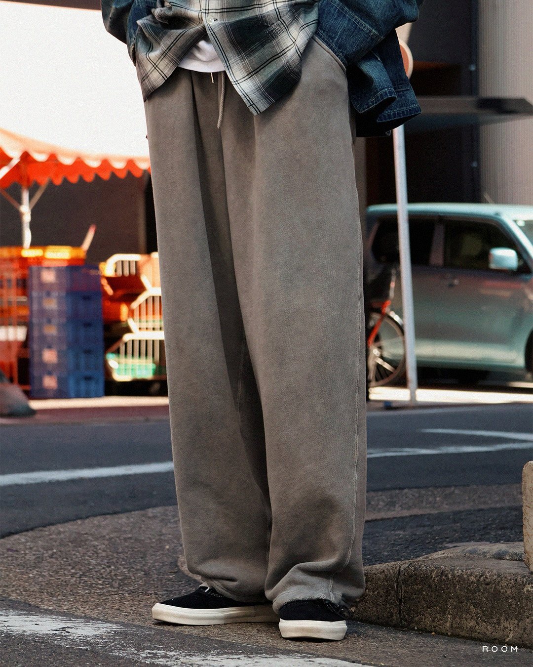 パンツはANACHRONORMのPIGMENT DYED TUCK WIDE SWEAT PANTSを着用。