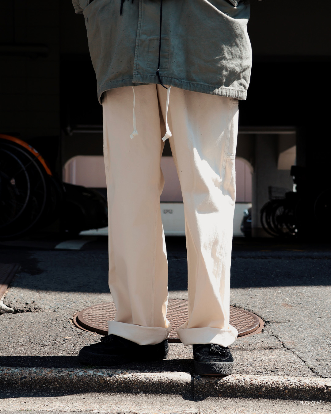 パンツにはMINEDENIMの12オンスのムラ糸デニムを使用したペインターパンツを合わせています。