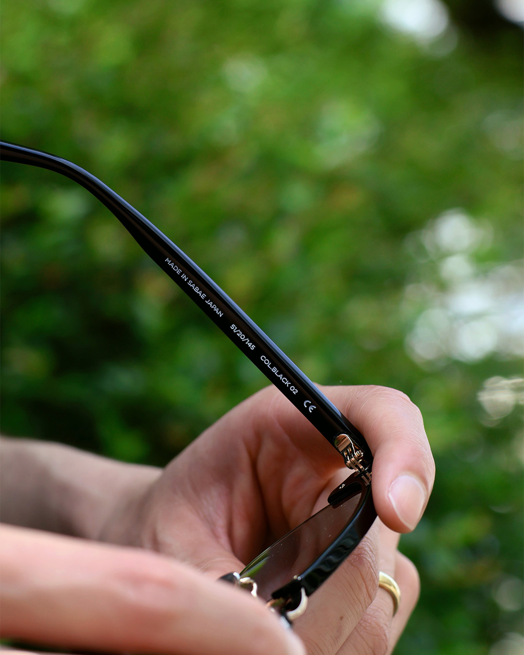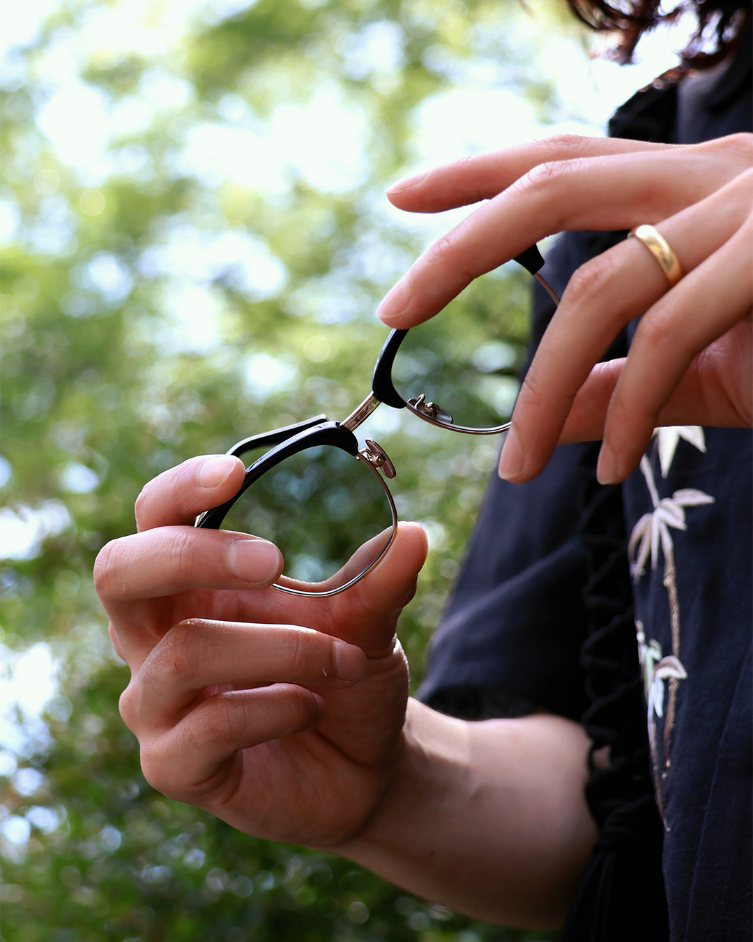 日本有数の眼鏡産地、福井県・鯖江にて、すべてのフレームを熟練した職人の手仕事によって仕立てています。