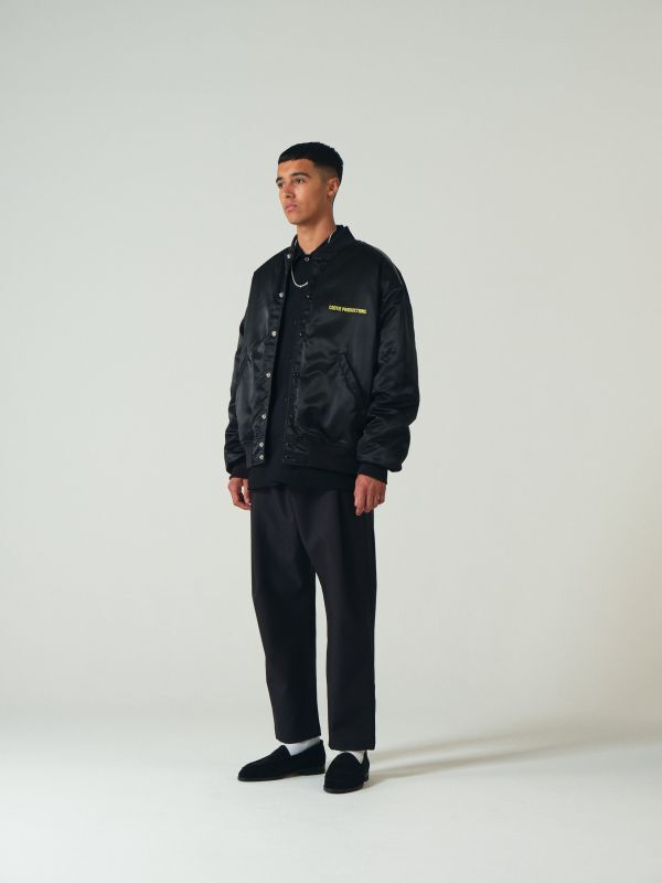 Nylon Satin Stadium Jacket (Black×Yellow)
