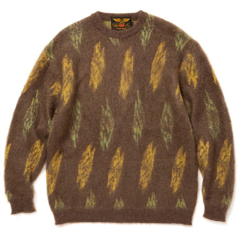 Fallen leaves pattern mohair crew neck knit sweater (Brown)