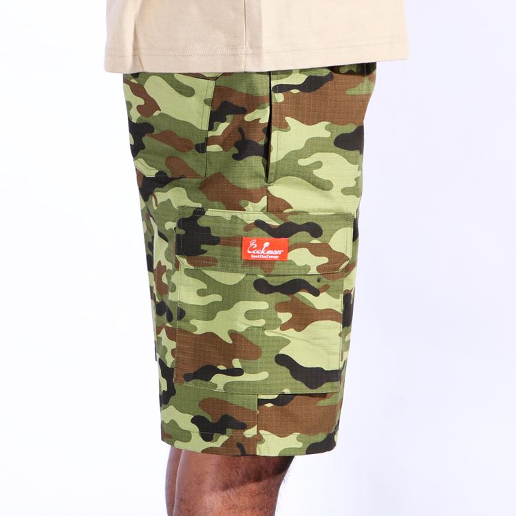 COOKMAN Chef Pants Short Cargo Ripstop Camo Green (Woodland) (Green) [231-11928]