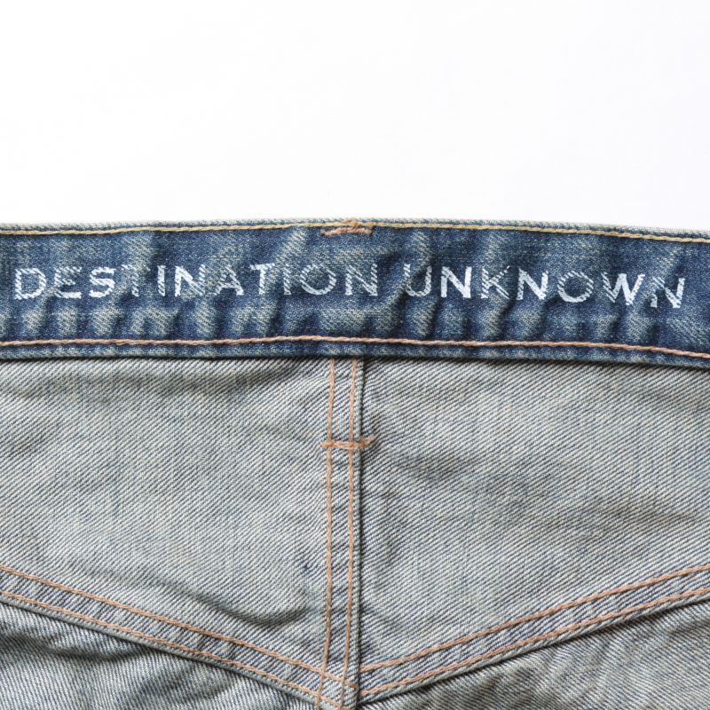 ベルト裏には『DISTINATION UNKNOWN』のプリントが入り、スレキにはネルチェックを使用。