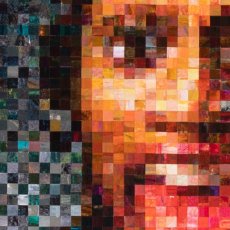 1cm角に切った古紙を色付けし、手作業で組み合わせた非常に緻密なモザイクアートとなっております。