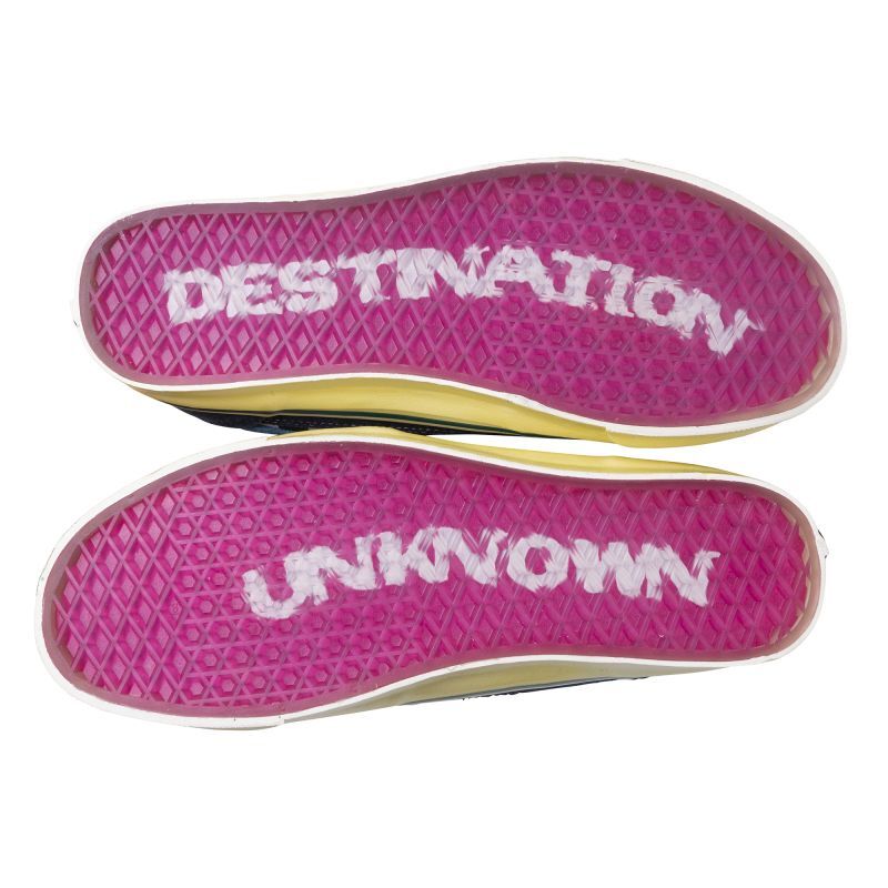 アウトソールはブランドのスローガンであるメッセージ”DESTINATION UNKNOWN”がクリアソールにプリントされた特別な仕様となっています。