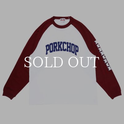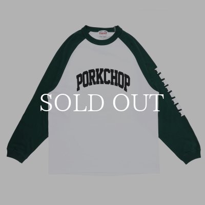 PORKCHOP GARAGE SUPPLY COLLEGE RAGLAN L/S TEE (WHITE × BLACK) [P0249]