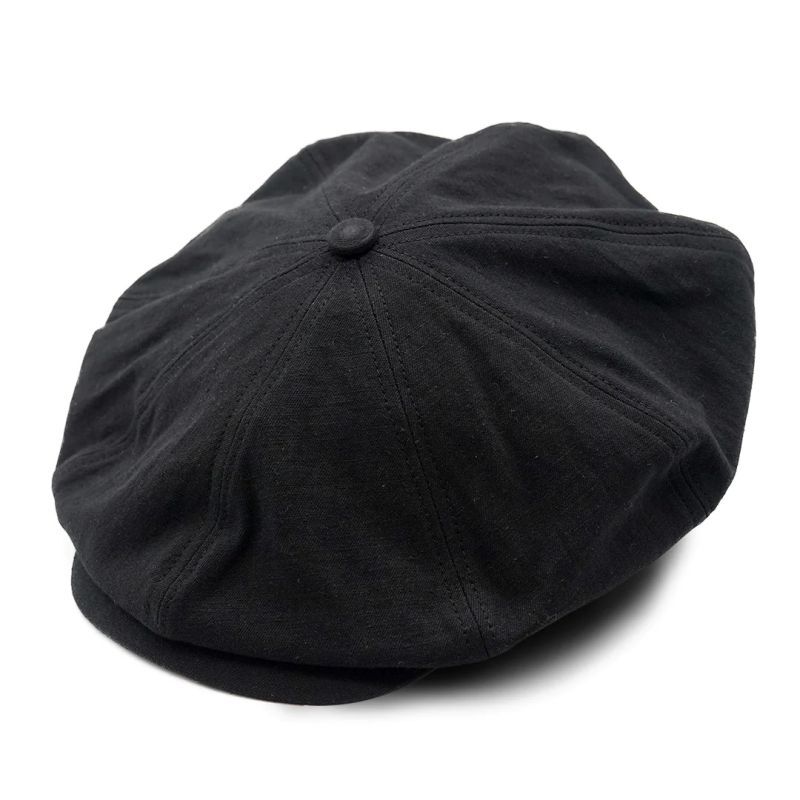 フラットキャップとニュースペーパーキャップの間の形で、置いた時のシルエットもよく被った時の膨らみとシルエットもよい中和されたデザインです。