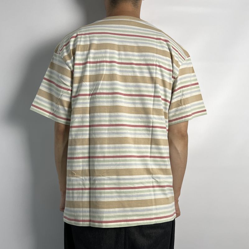 • 100%コットン200g先染めストライプ半袖ニットトップ