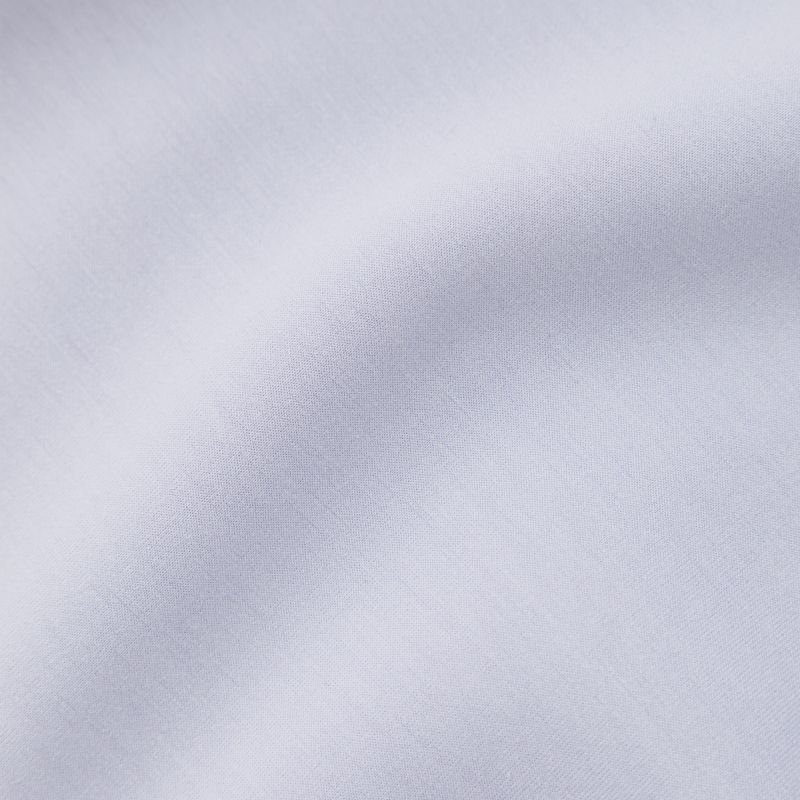 脇に入れた深めのスリットと前後差、ワイドな身幅が素材のタチと相まって立体感のあるシルエットを形成。