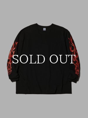 袖は創造と復活のシンボルとしていられるスカラベとフレームス、背面はブランドロゴとその周りを∞を描き回り続けるキャラクター。