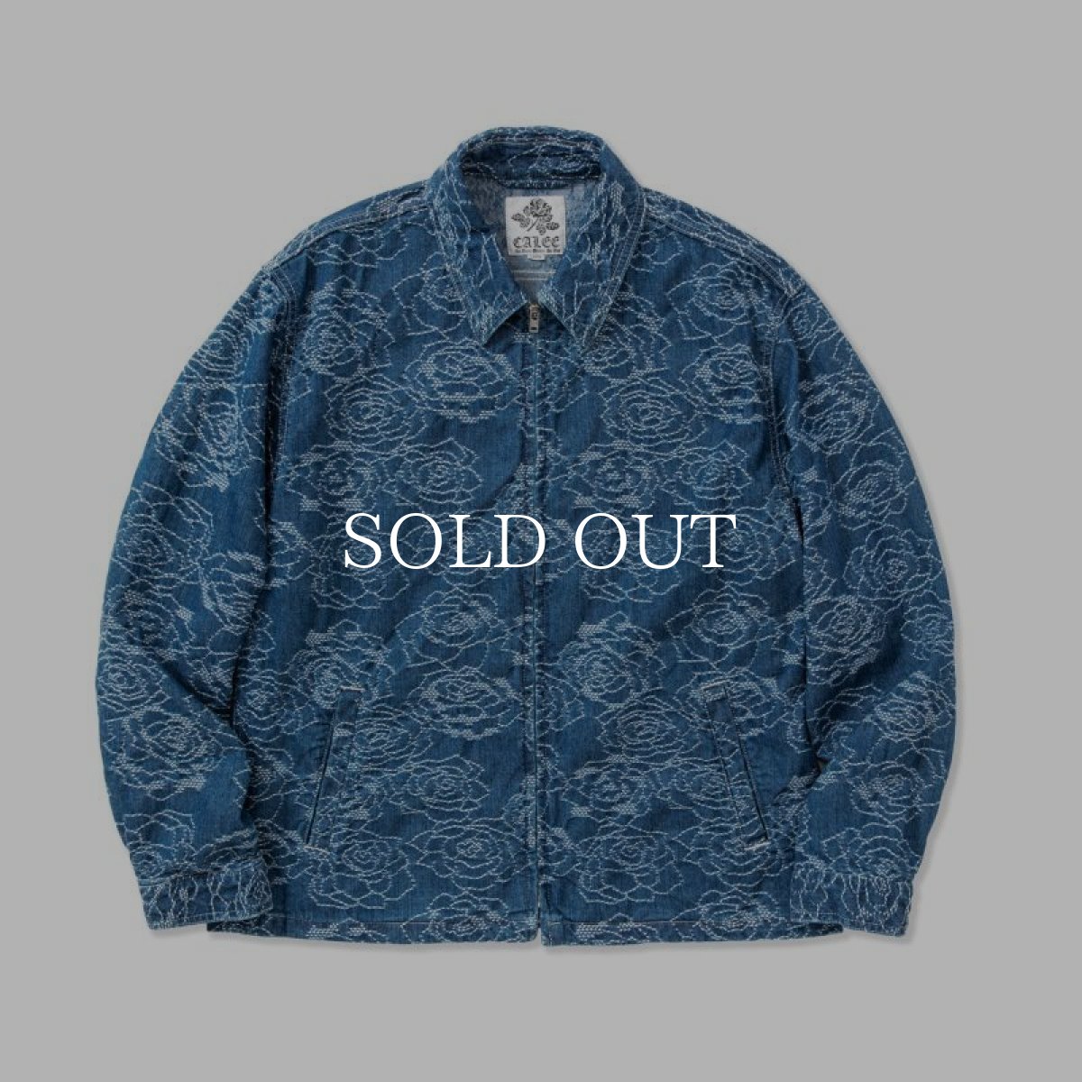 オリジナルの薔薇柄デニムジャガード生地で作製されたスウィングトップ。