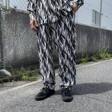 オリジナルのフェザー柄をプリントしたテーパードタイプパンツ。