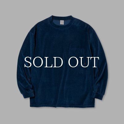 ベロア素材で作製されたドロップショルダーのワイドシルエットL/Sポケット Tシャツ 。