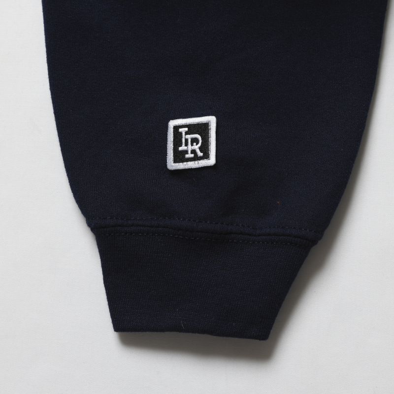 胸には定番の OG ロゴが施されています。袖には LR の刺繍ワッペンが施されています。
