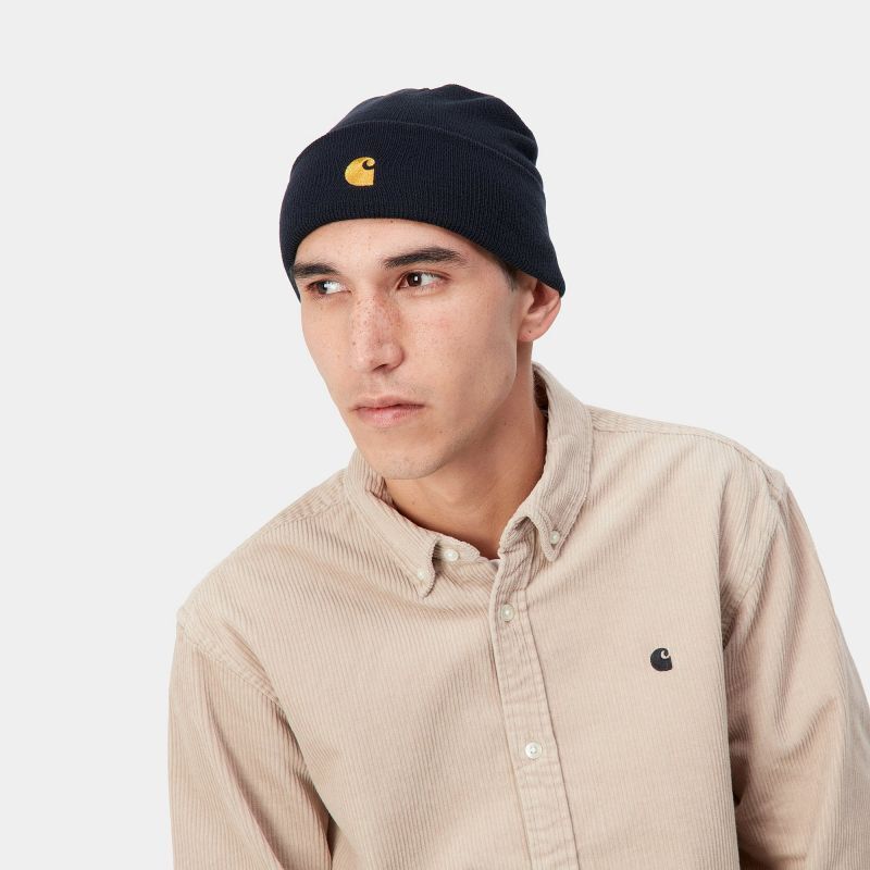 CARHARTT WIP CHASE BEANIE (Dark Navy / Gold) [I026222]