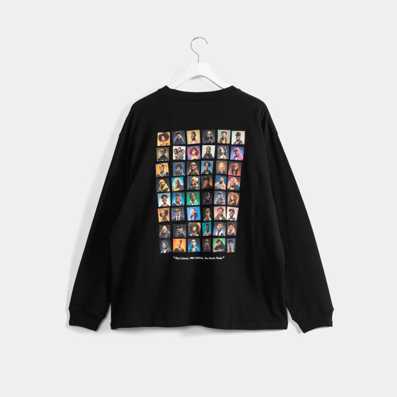 HIP HOP史に名を残す重要人物達を3DCGアニメーション風に表現し、卒業アルバム風にまとめたデザインでフロントに落とし込んだロングスリーブTシャツ。