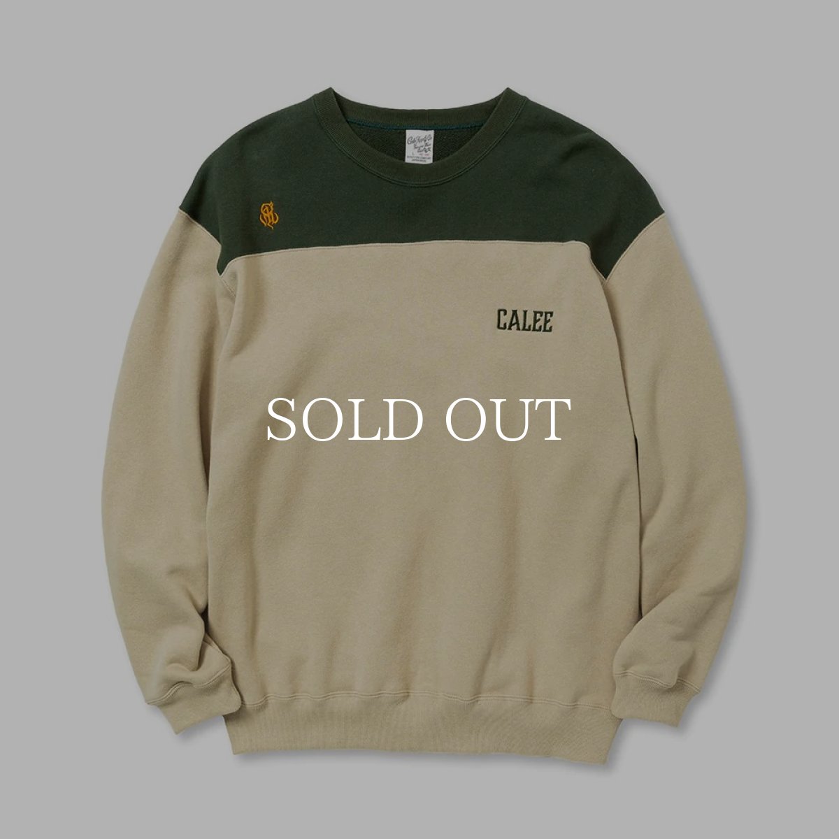 CALEE EMBROIDERY BICOLOR CREW NECK SW (OLIVE / BEIGE) [CL-23AW035]