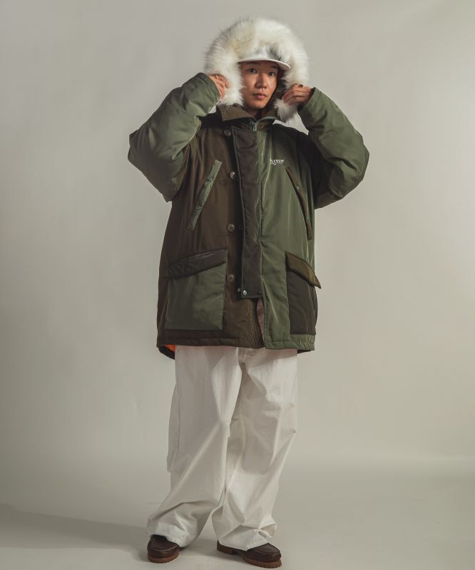 同系カラーで複雑に切り替えを施した中綿N-3B ジャケット。