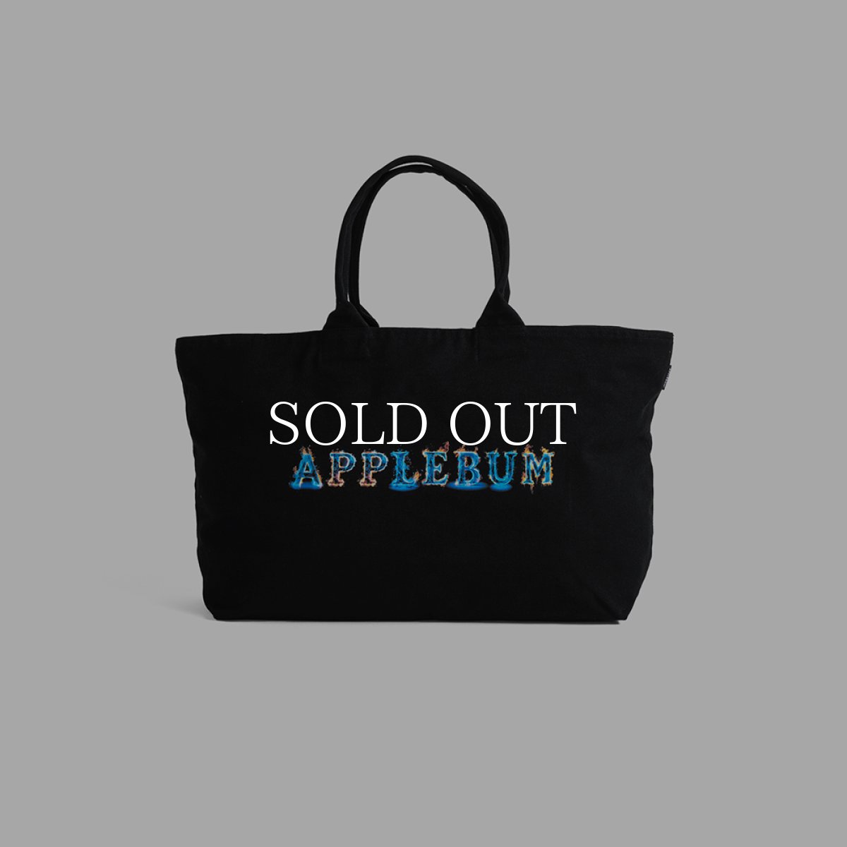 完全燃焼を意味する青い炎で象られた【APPLEBUM】の文字をプリントしたキャンバストートバッグ。