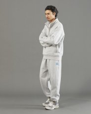 15.0oz の裏毛起毛生地を使用したハーフジップクルーネックスウェット。