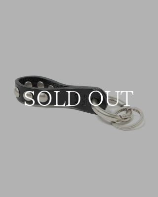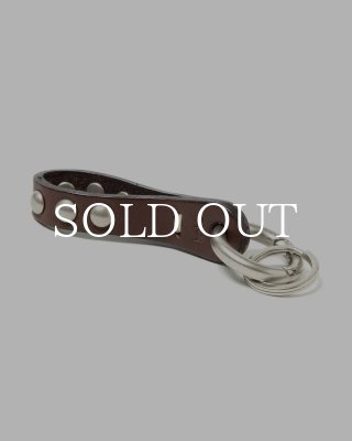 肉厚のレザーにスタッズを配置したキーリングはバッグのハンドルやパンツのベルトループなどに取り付けて使用可能です。