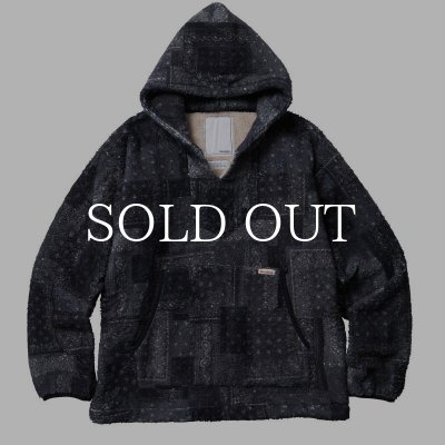 バンダナのパッチワーク柄をプリントしたフリースのフーディ。