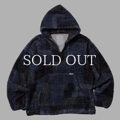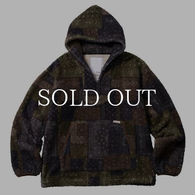 バンダナのパッチワーク柄をプリントしたフリースのフーディ。
