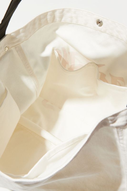 コットンキャンバスのニュースペーパーバッグです。少ない荷物でも使いやすいので、日常で活躍するサイズのバッグです。