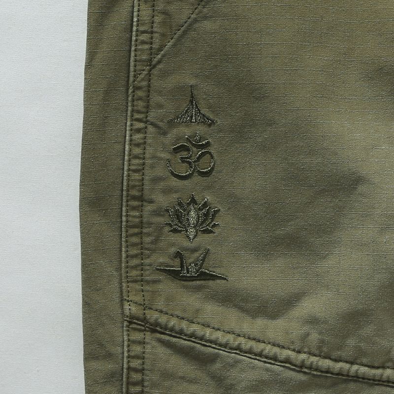 右ポケットにはバングラデシュのアイコン(ダッカ独立記念塔/オーム/睡蓮/折り鶴)の刺繍が入ります。