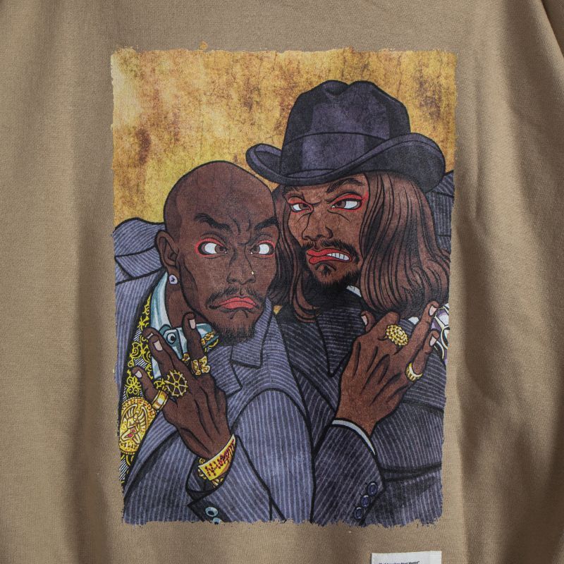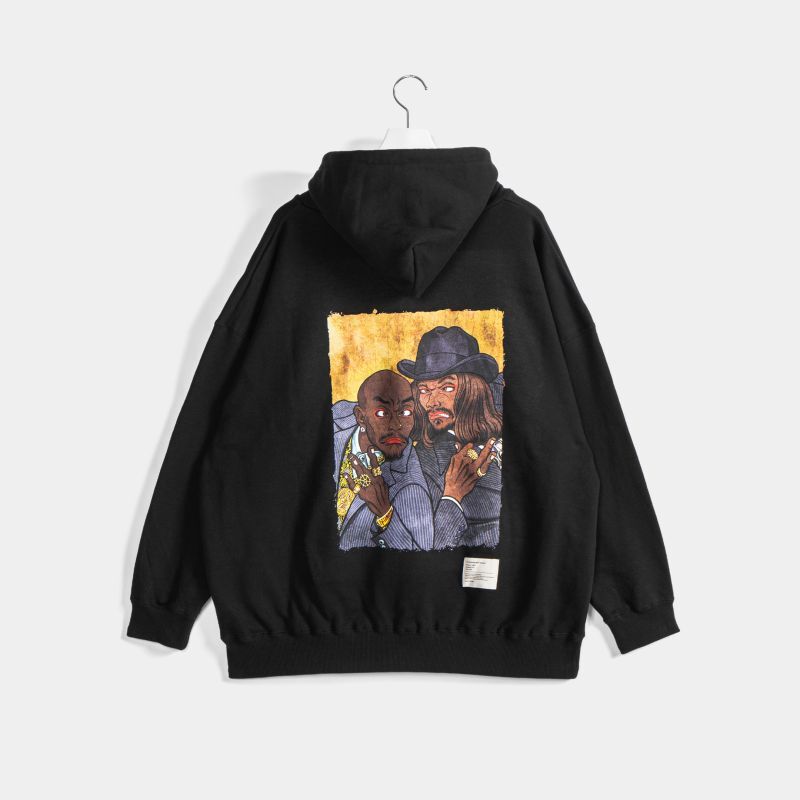 西海岸で最も成功したラッパー2人の浮世絵風グラフィックを落とし込んだスウェットパーカー。