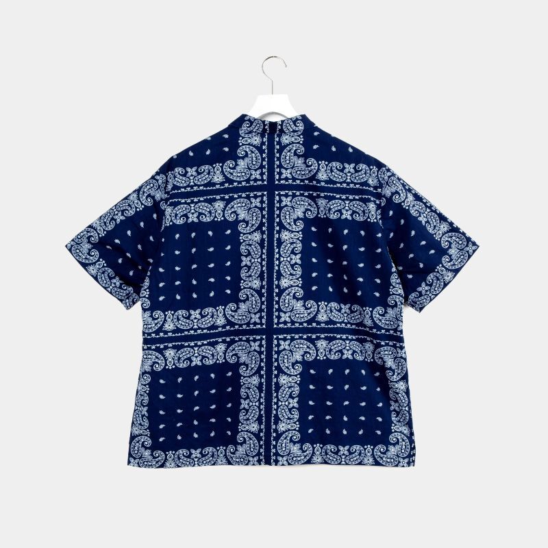インディゴ抜染で表現したペイズリー柄シャツ。