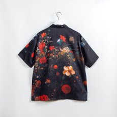 フラワーガーデンと都市のイラストを全面に落とし込んだアロハシャツ。