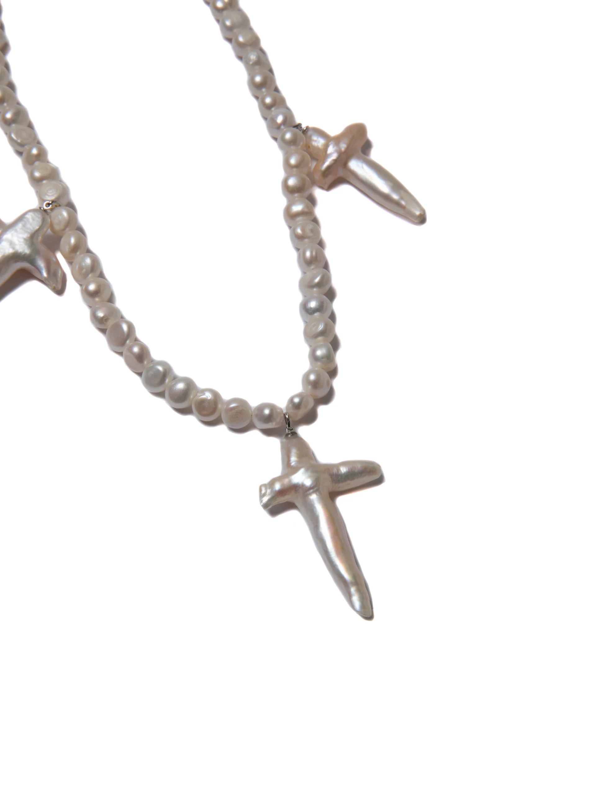 COOTIE Distortion Cross Pearl Necklace (Type-2) [CTE-25S540]