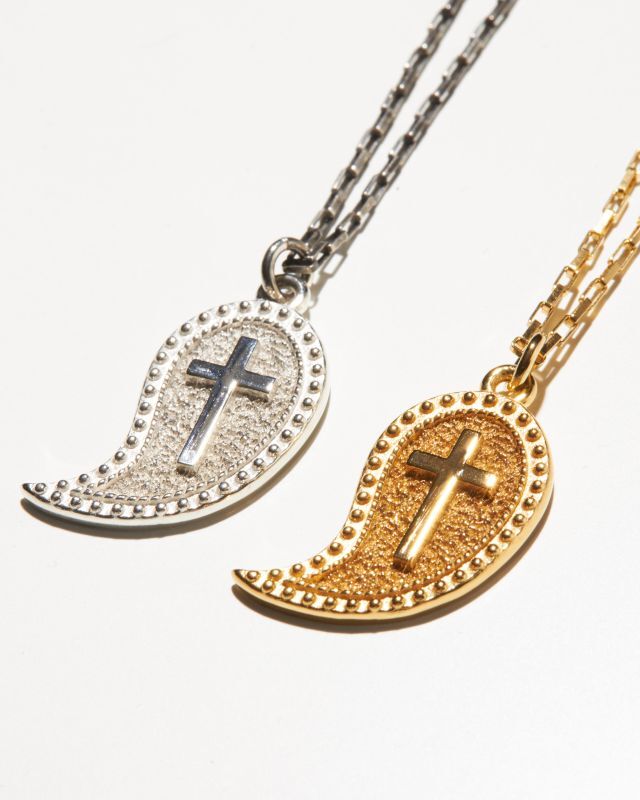ティアドロップペイズリー型の外周には2種の飾りを、中央にはクロスが配置し、そのクロス周りは荒らし加工にて仕上げています。
