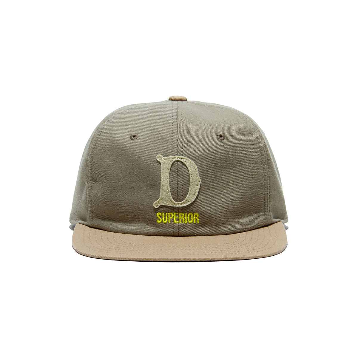 クラウンとブリムがバイカラーになったインパクトあるデザインで、フロントパネルに『D』アップリケ刺繍とテーマの『SUPERIOR』の刺繍を施しています。