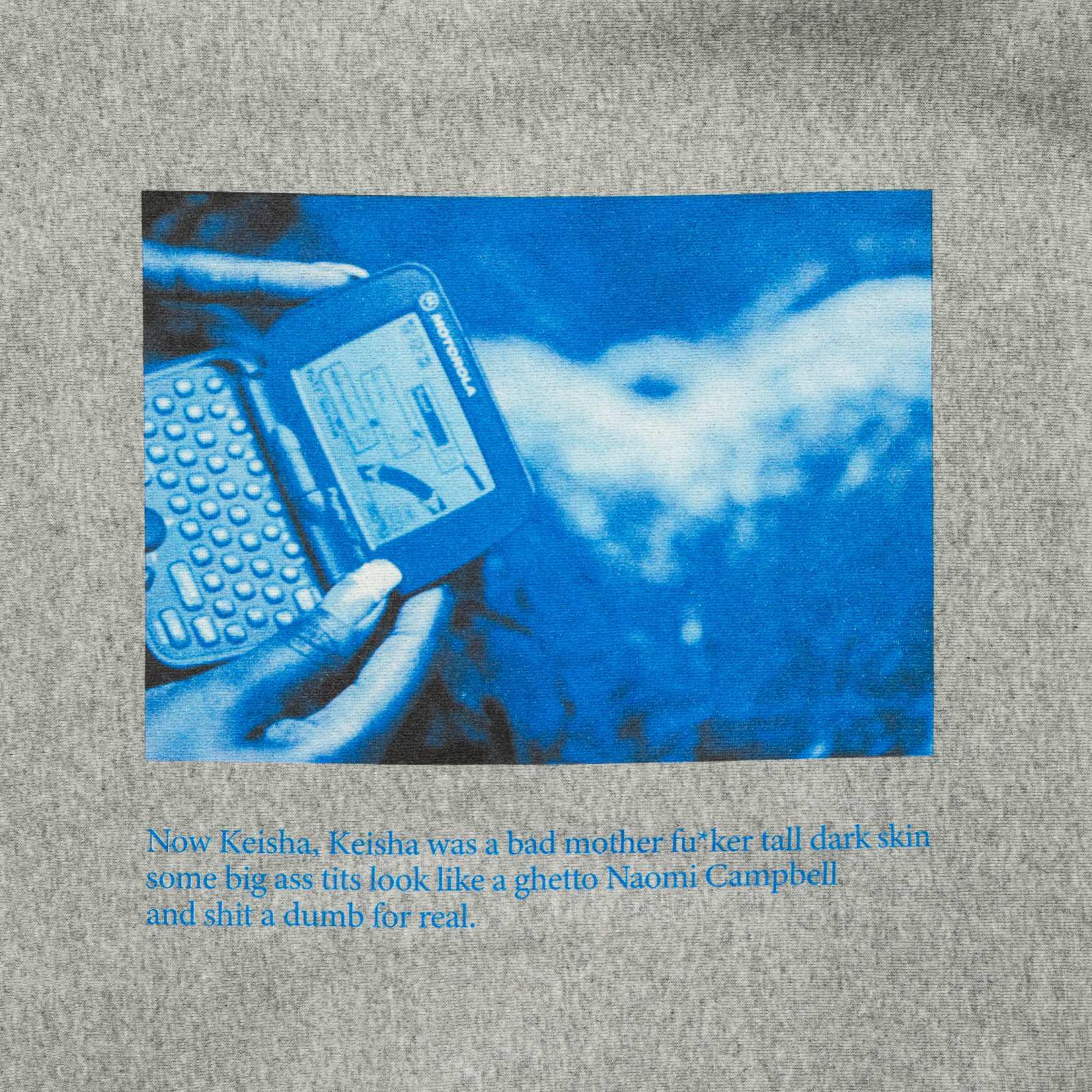 当時の空気感が伝わる最先端ガジェットの写真と、ウィットに富んだ言い回しで表現した【Keisha】へのリスペクトメッセージが特徴です。