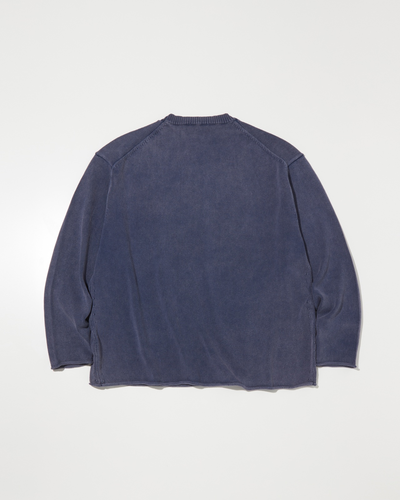 7G(ゲージ)のコットンニットを使用して、ウォッシュ加工によりシンプルなニットに立体感を持たせております。