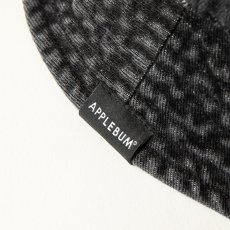 「APPLEBUM」の文字を変形させ、リンゴに見立てたロゴマークとして再構築し、刺繍で落とし込んだバケットハット。