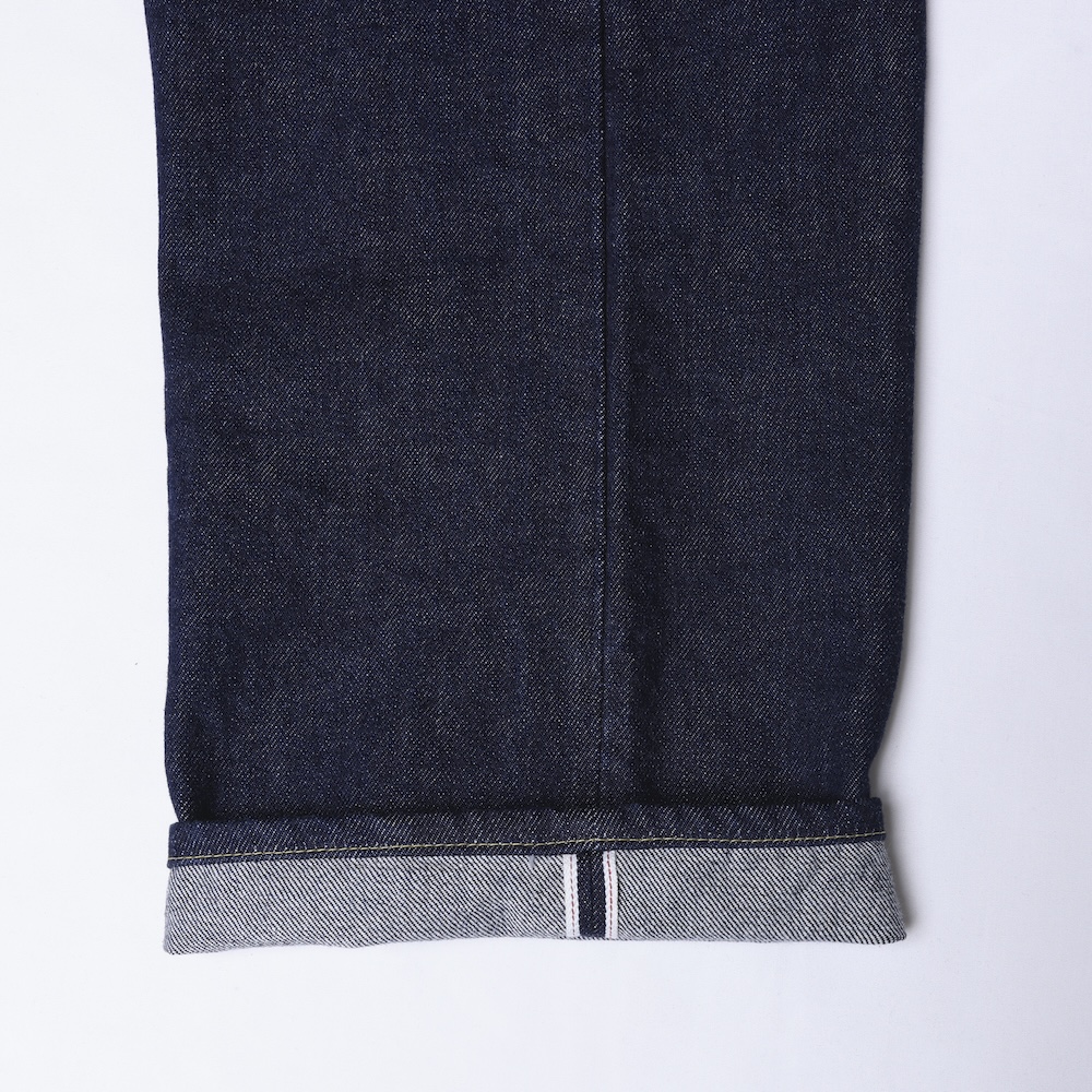 13.5ozのセルビッジデニムを使用したワンウォッシュの日本生産のデニムパンツ。