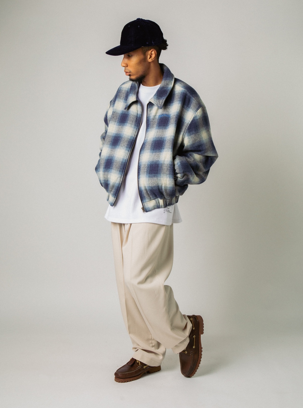 起毛感のあるオンブレチェック生地で仕立てた中綿キルティングジャケット。