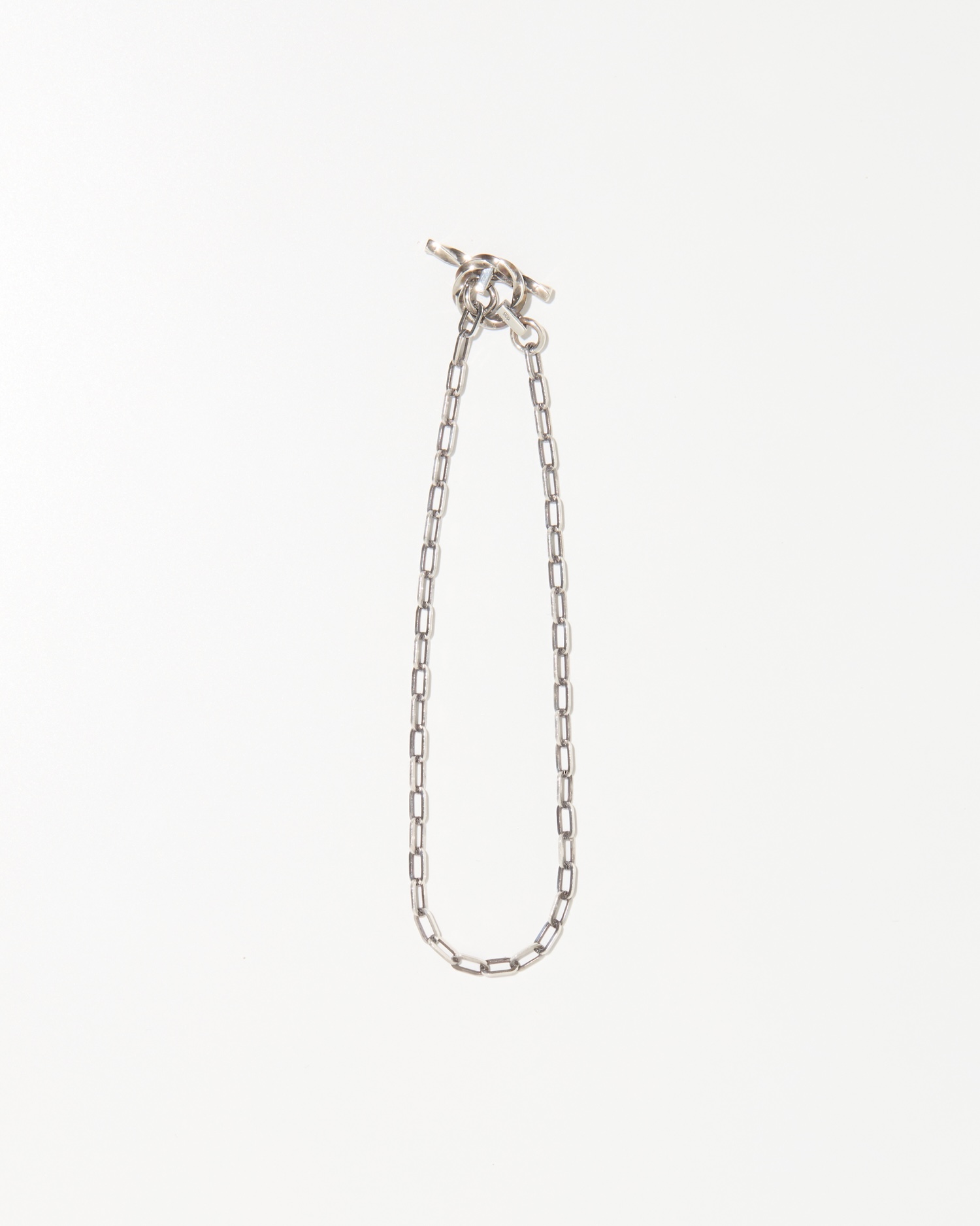 チェーンは、1コマ約5mm幅(縦0.5mm)と大振りな角線ロー付けタイプ。(同チェーンにてネックレス展開もあります)