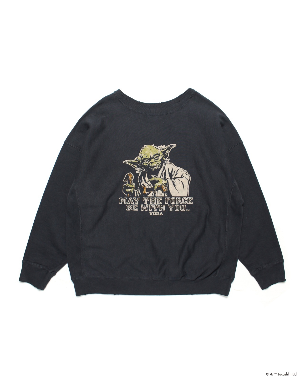 BOWWOWのスター・ウォーズコレクションより、50年代にヨーダデザインのフロッキースウェットが存在していたらと想像して制作された、ヴィンテージを愛するBOWWOWのヨーダデザインのスウェットが登場。