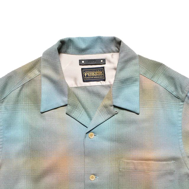 『PENDLETON』を代表するデザインのひとつであるボードシャツを元に、MINEDENIオリジナルパターンで野暮ったさを削ぎ落したオープンカラーシャツに仕立てた。
