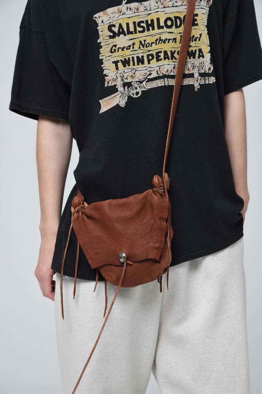 A deer-skin pouch imagined through the lens of 1990s American casual fashion culture.