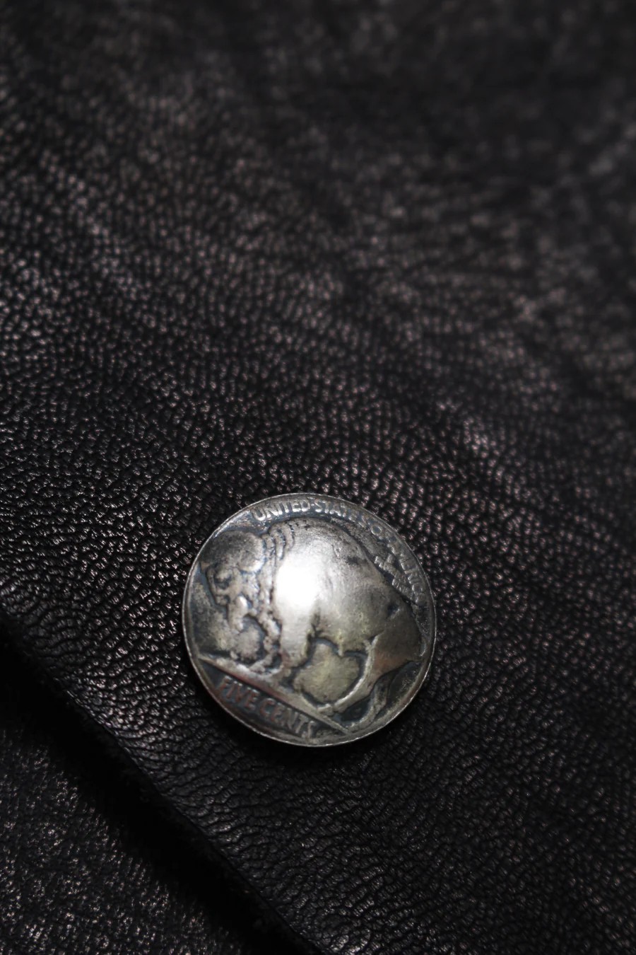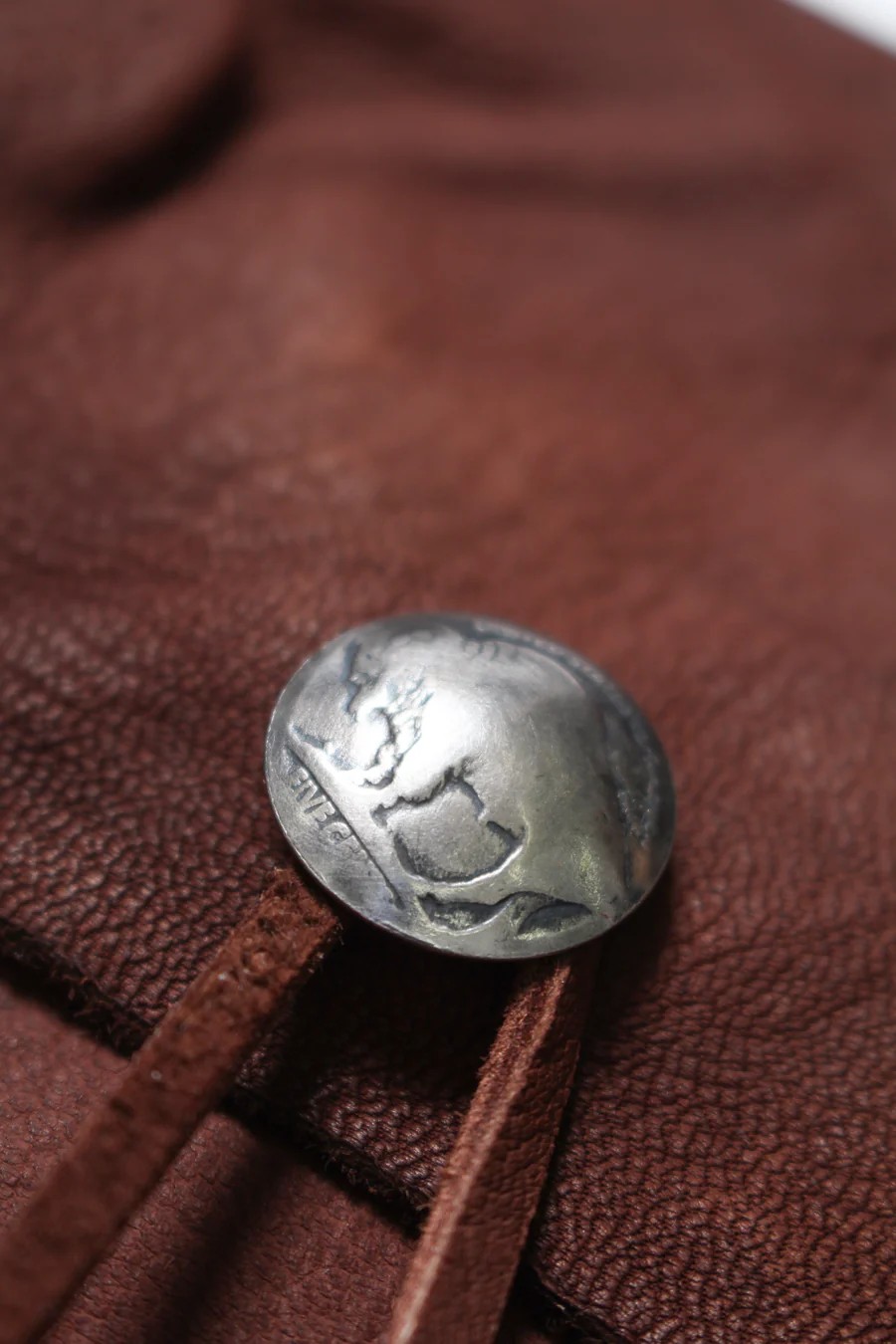 留め具、釦には、1900年代初頭のアメリカのセントコインを叩いて成形したリアルコンチョ釦を使用。